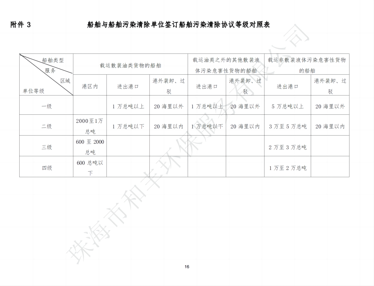 珠海市和豐環(huán)保服務(wù)有限公司船舶污染物清除協(xié)議待命費(fèi)公示