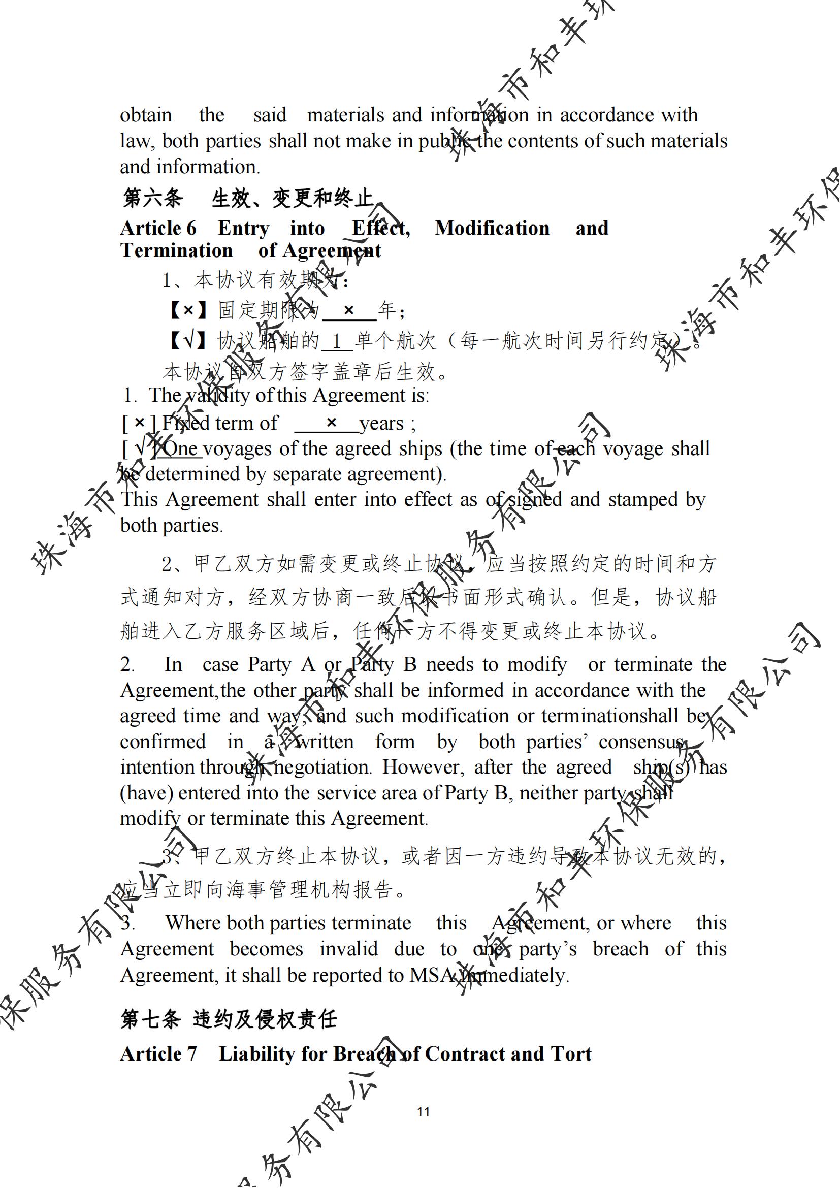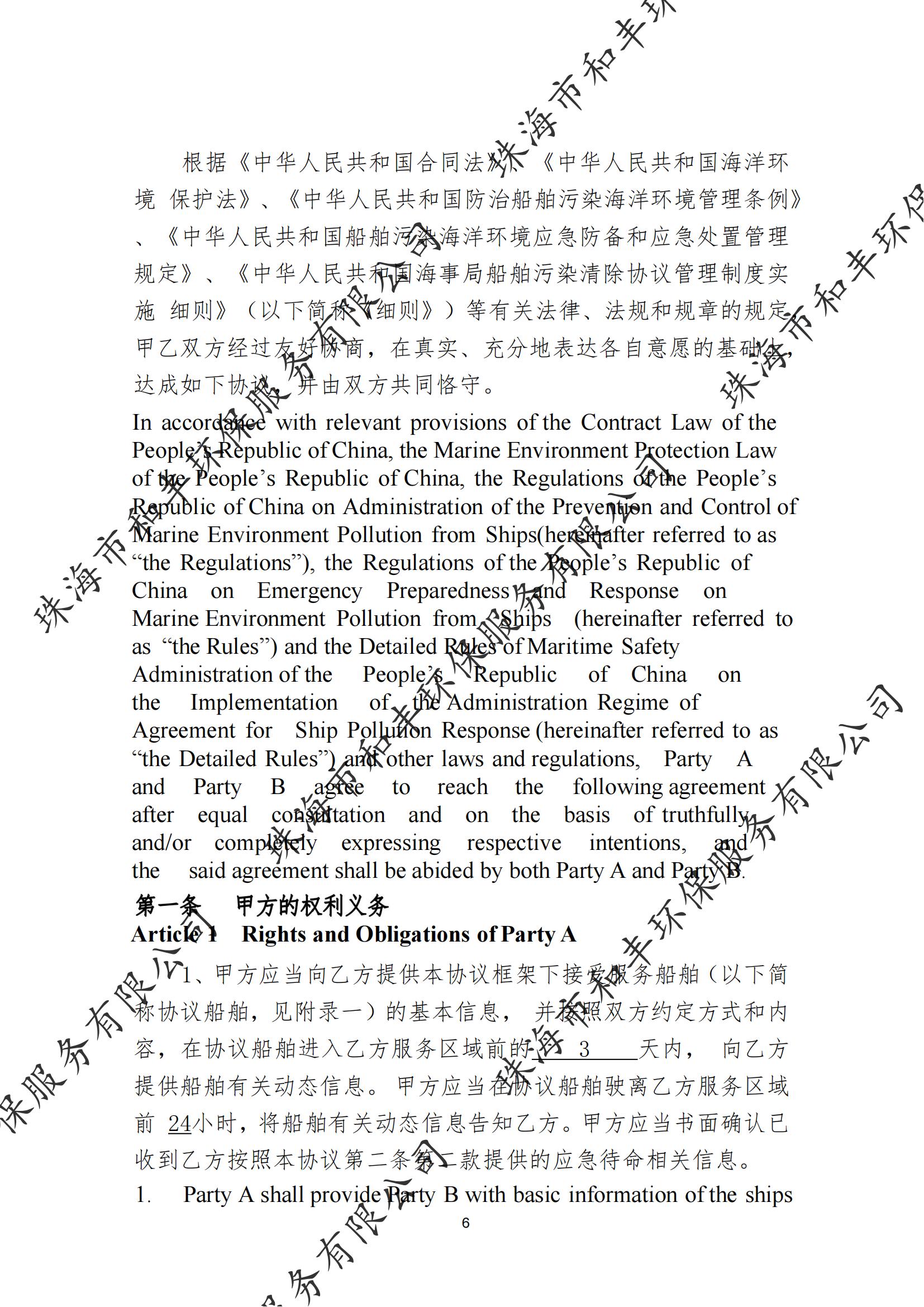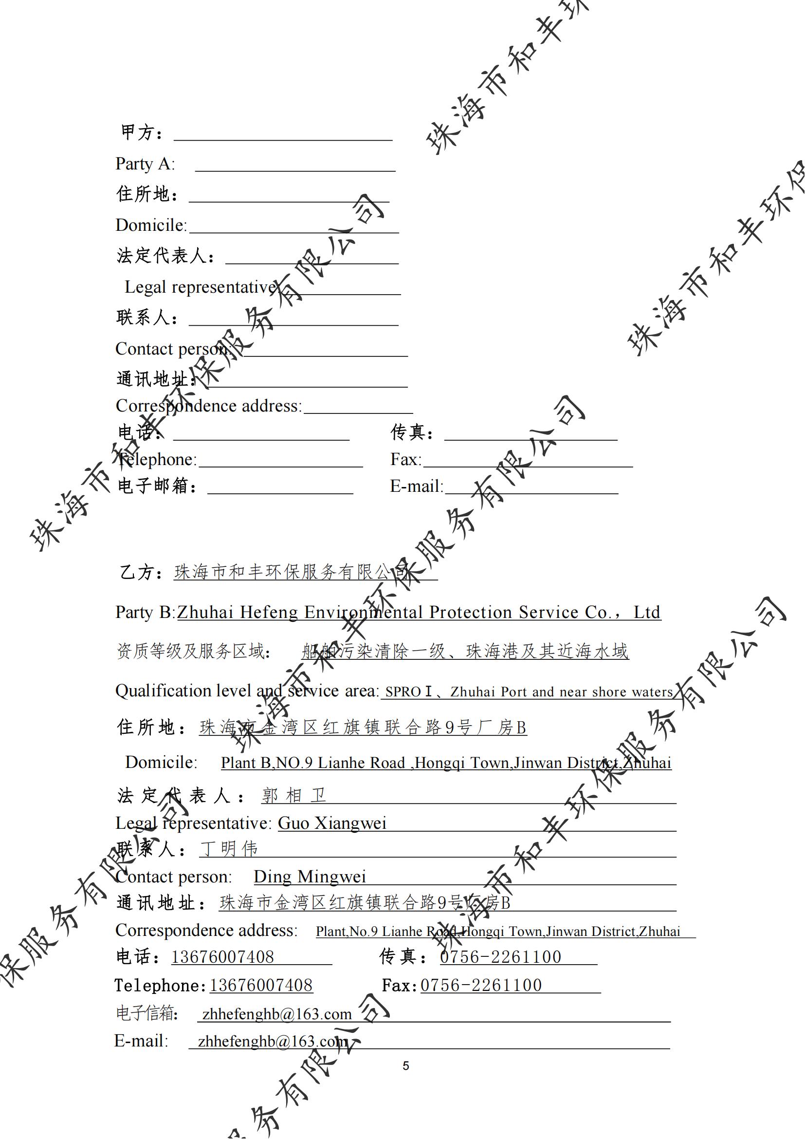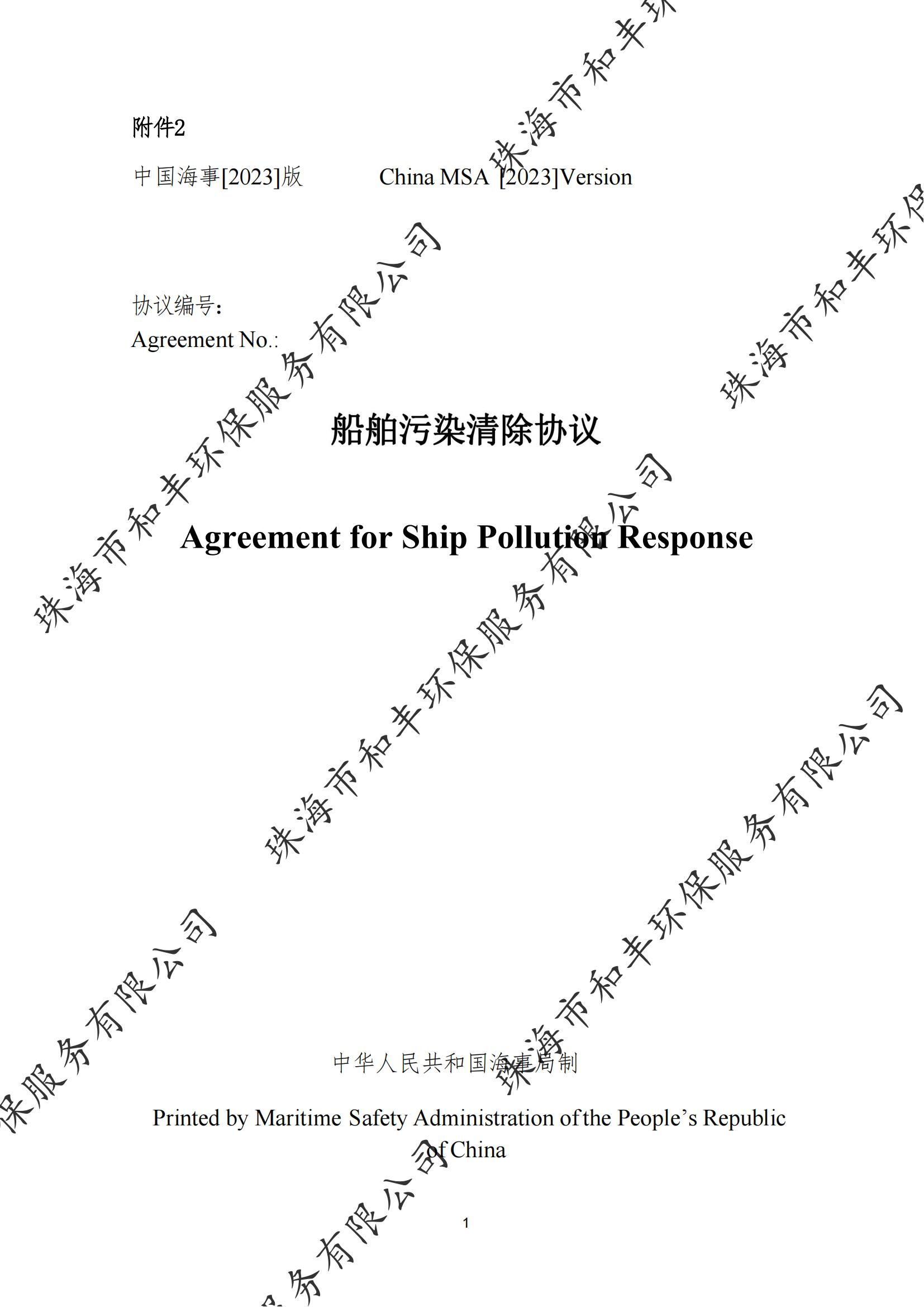 珠海市和豐環(huán)保服務(wù)有限公司船舶污染清除協(xié)議