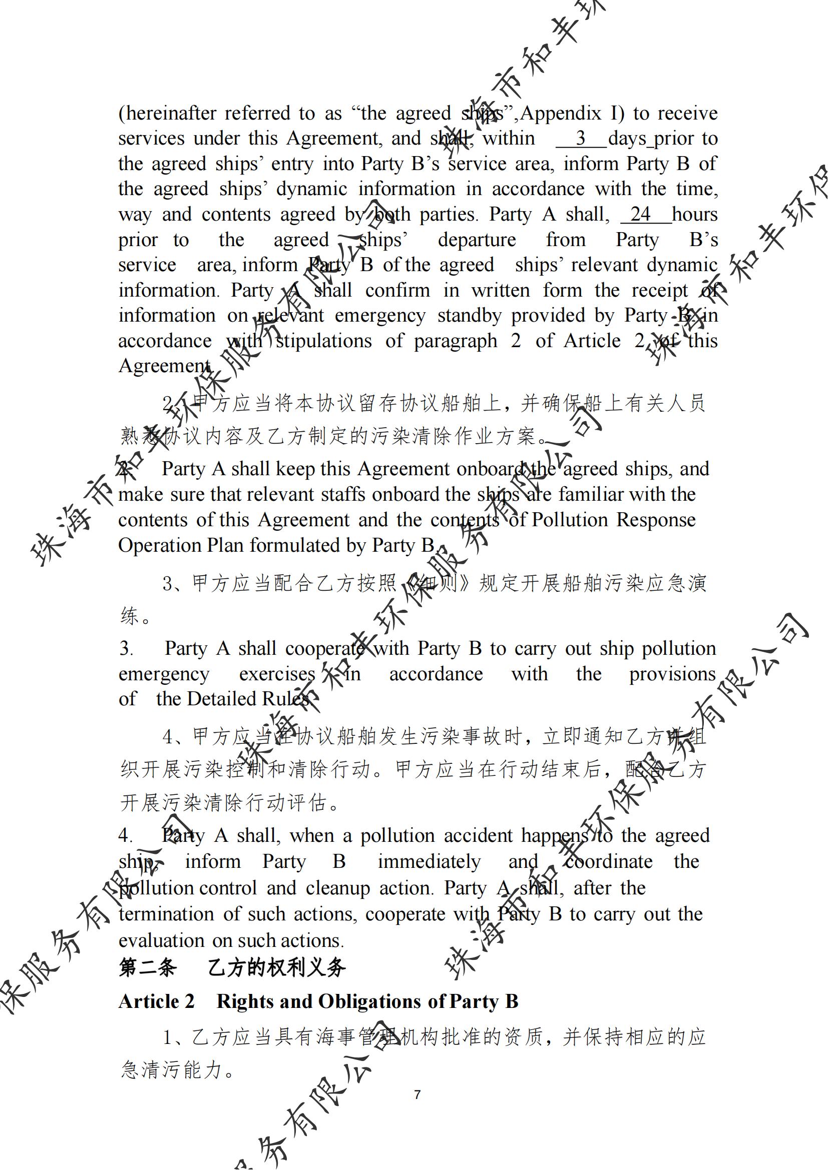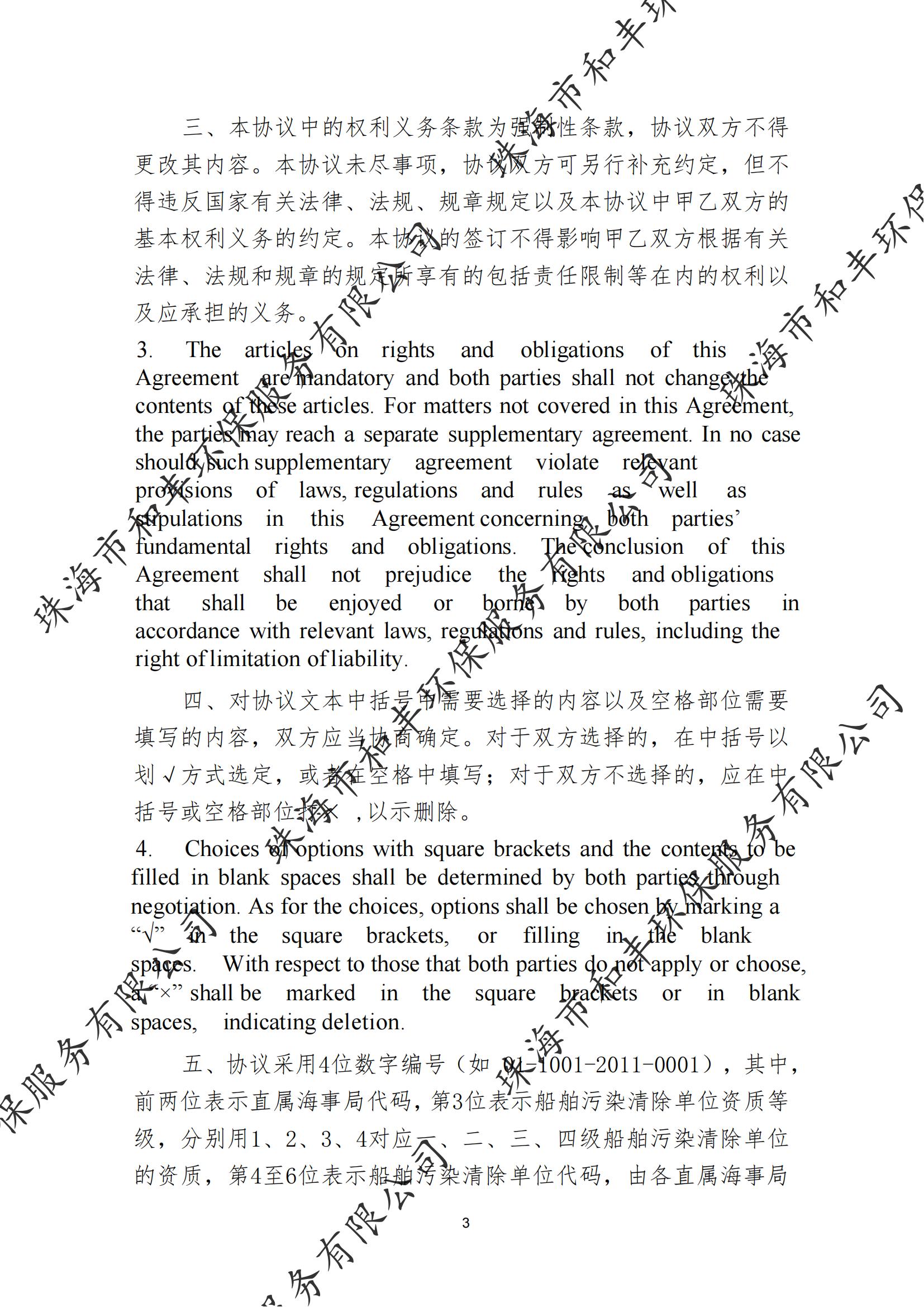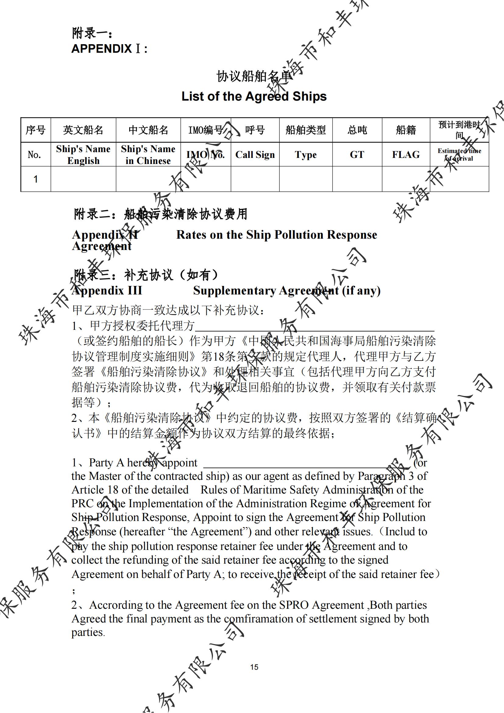 珠海市和豐環(huán)保服務(wù)有限公司船舶污染清除協(xié)議
