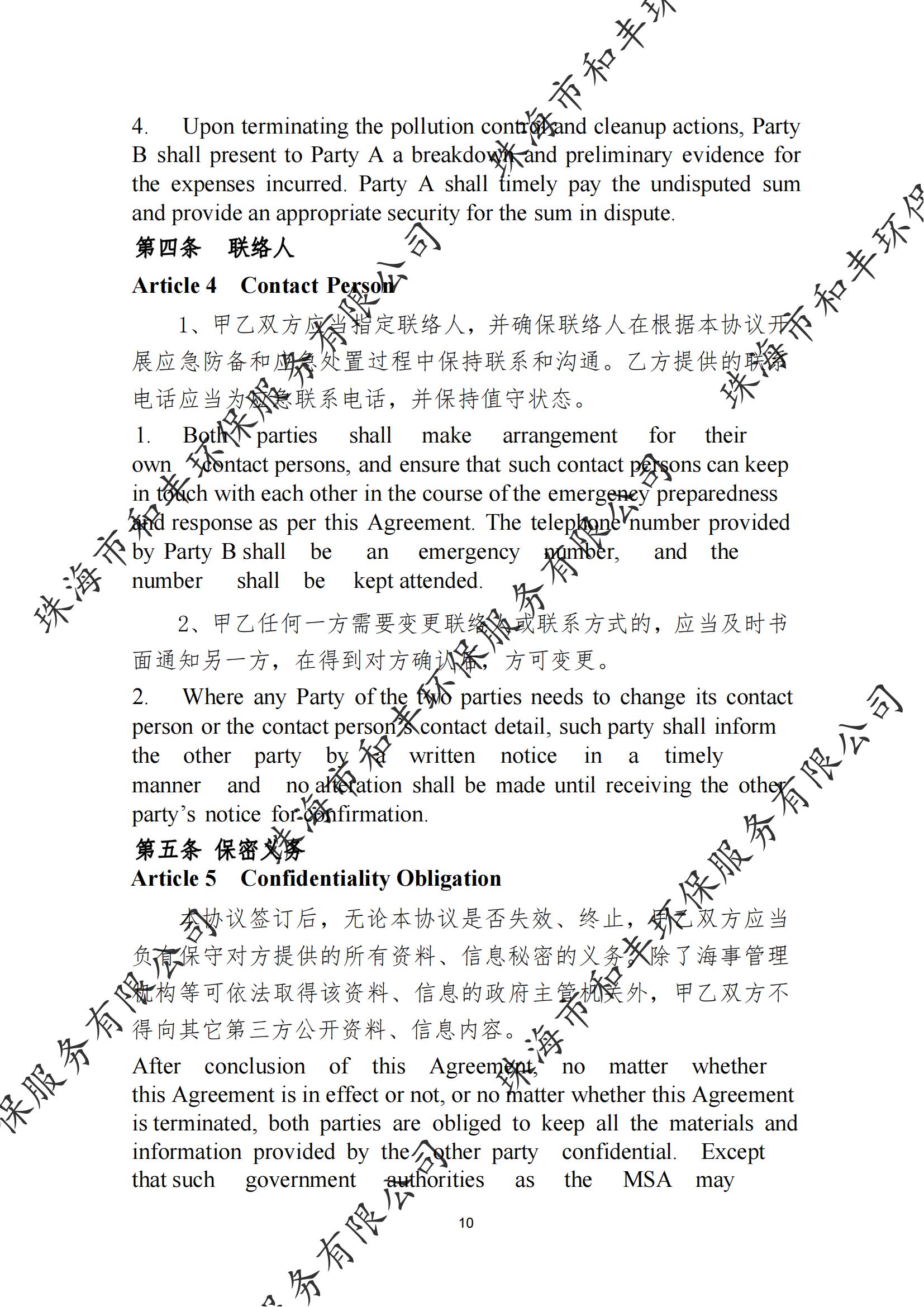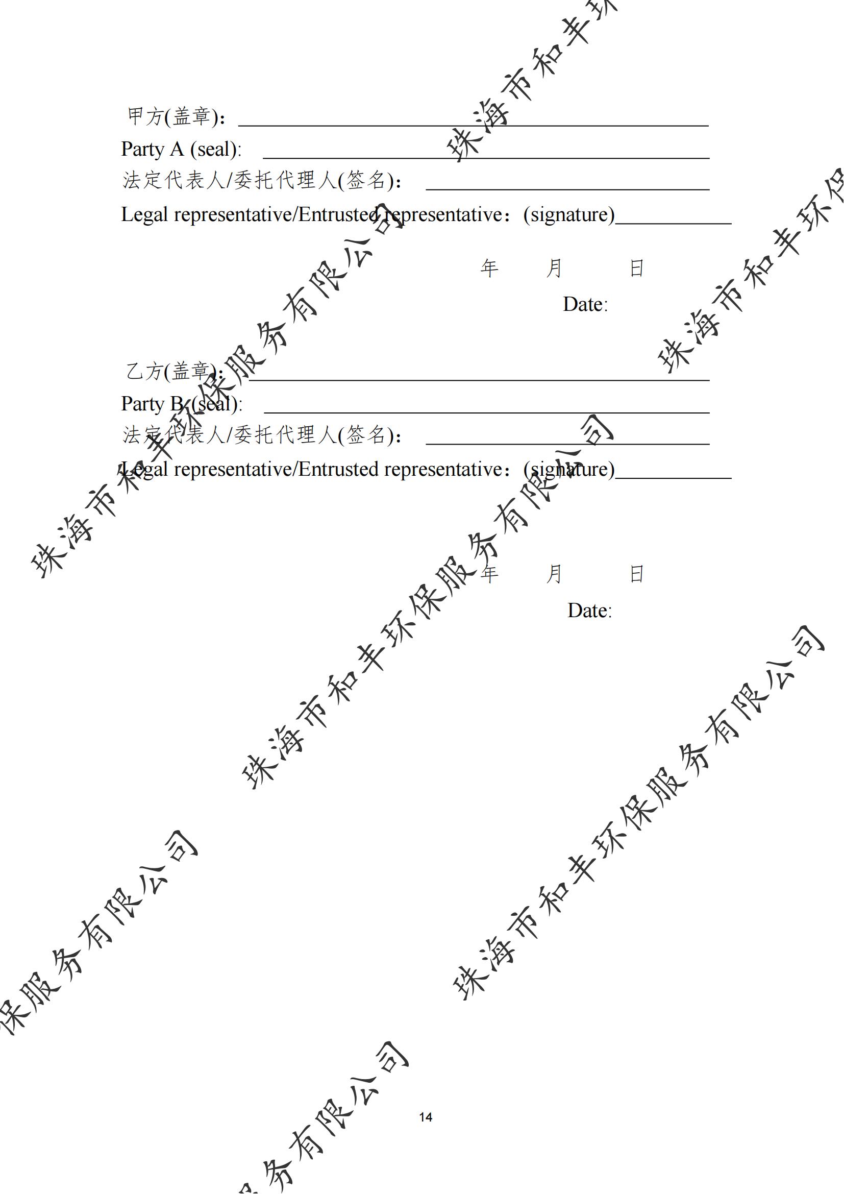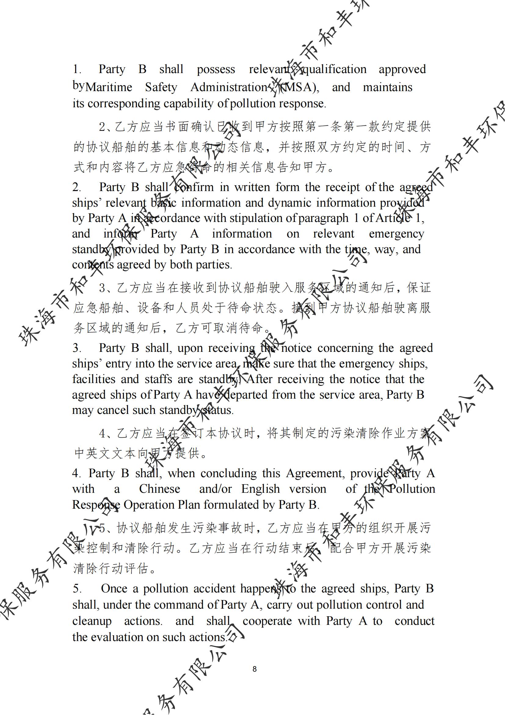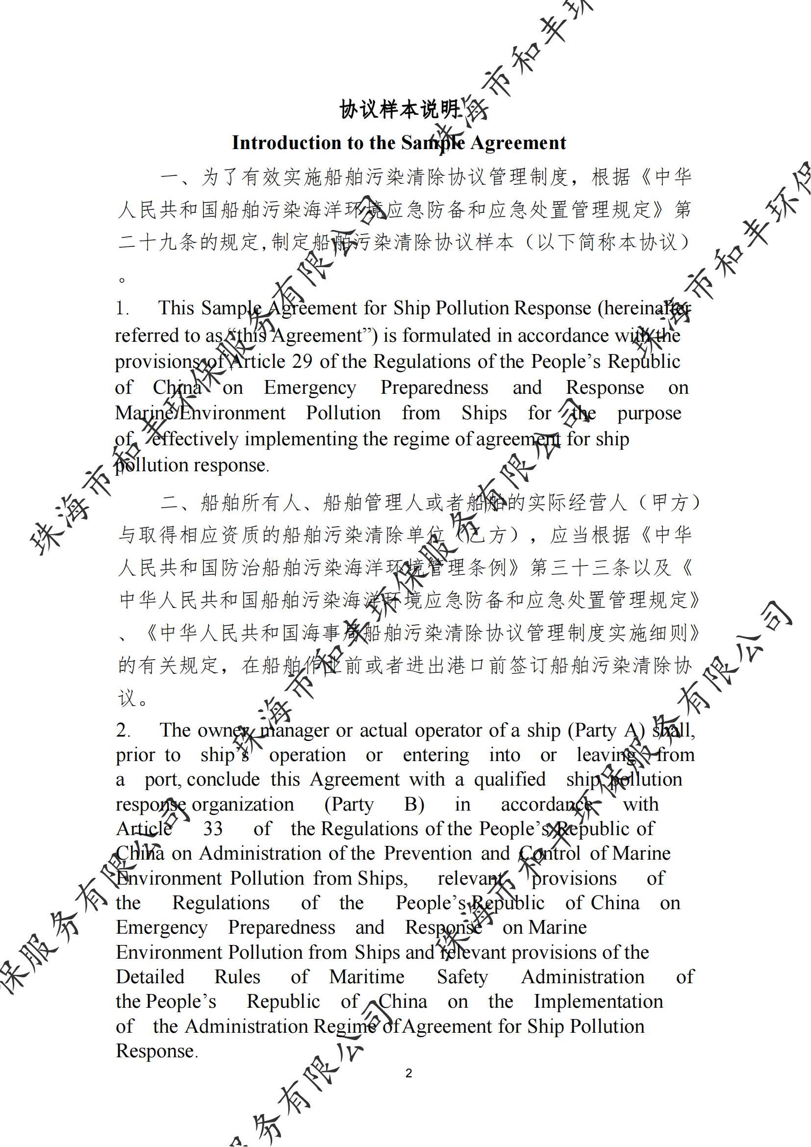 珠海市和豐環(huán)保服務(wù)有限公司船舶污染清除協(xié)議