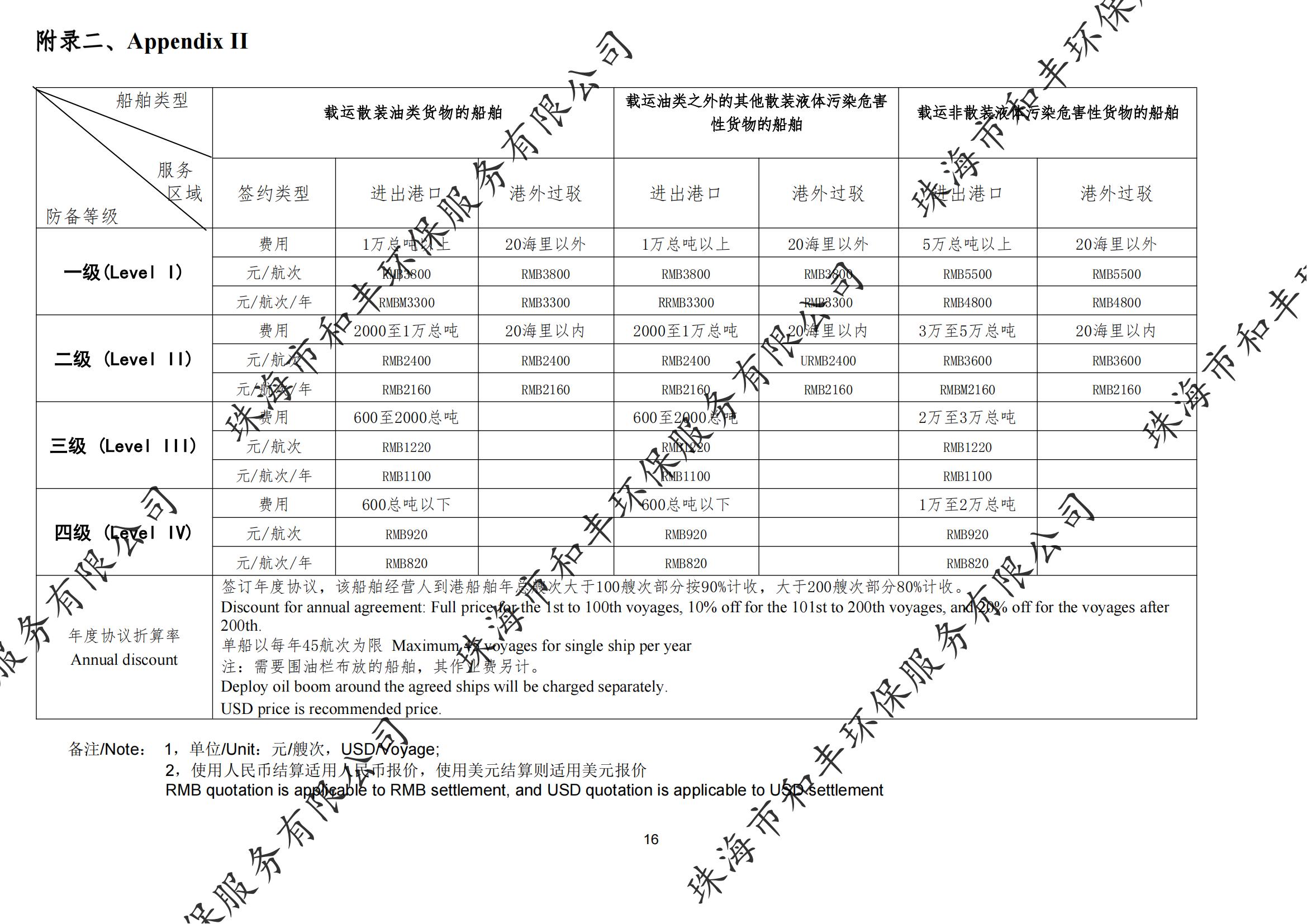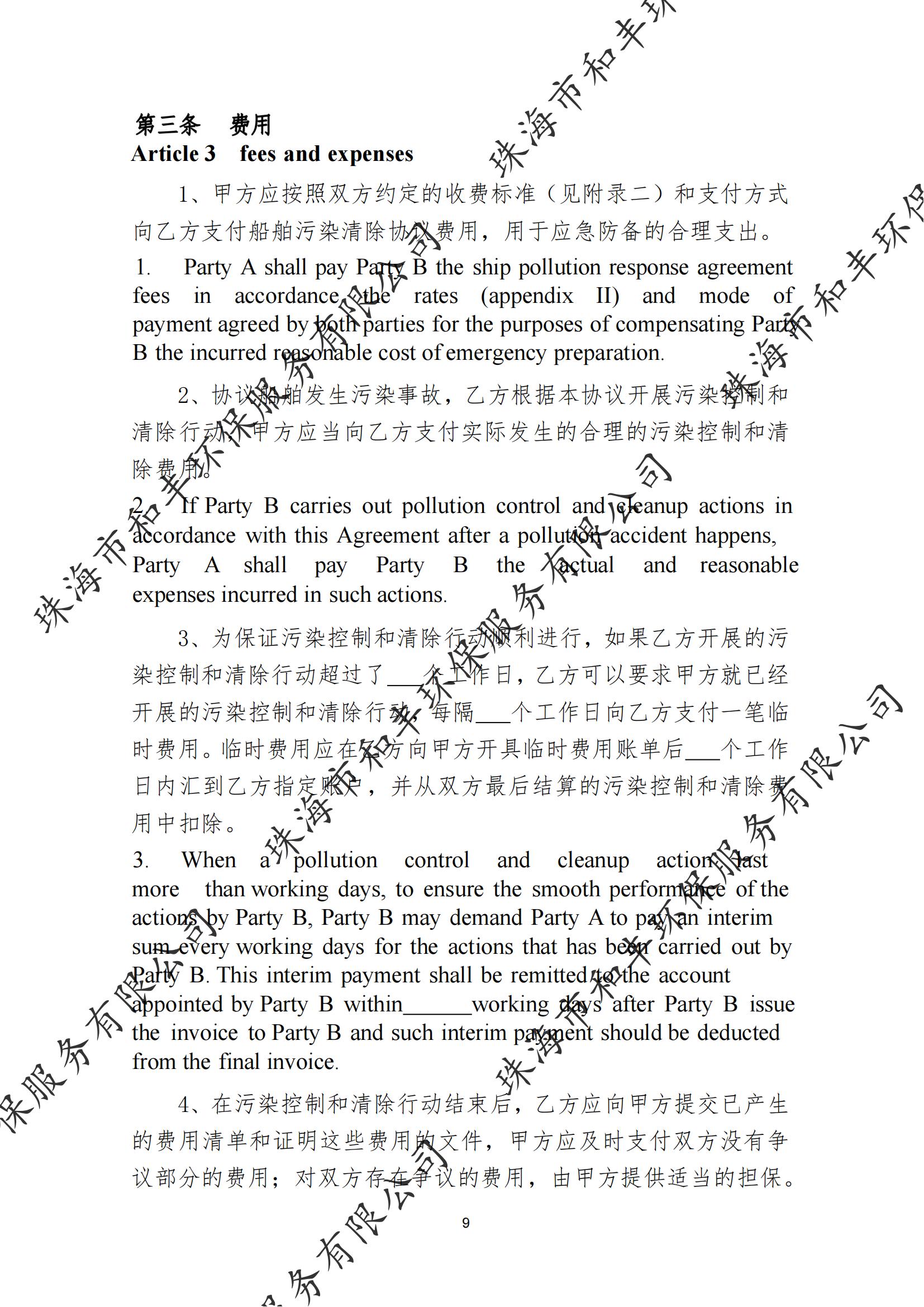 珠海市和豐環(huán)保服務(wù)有限公司船舶污染物清除協(xié)議待命費