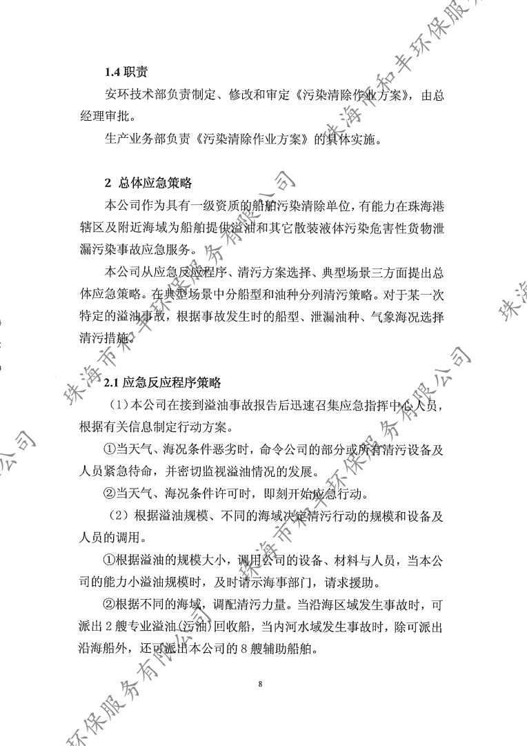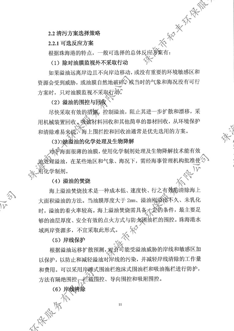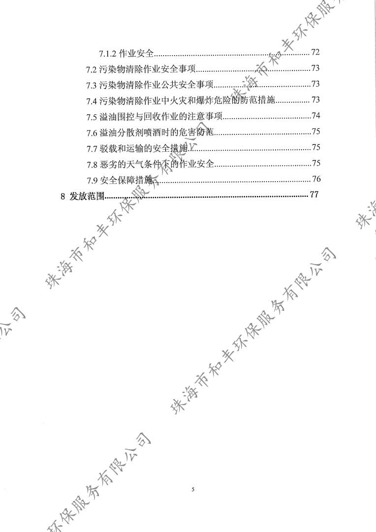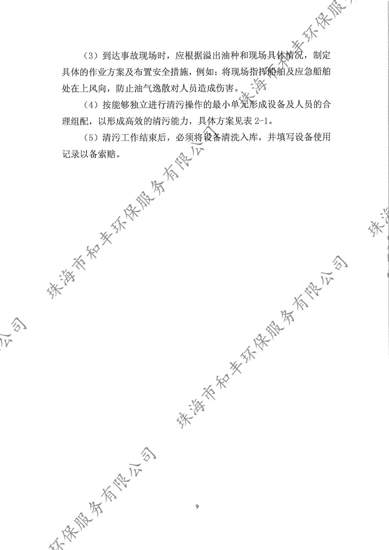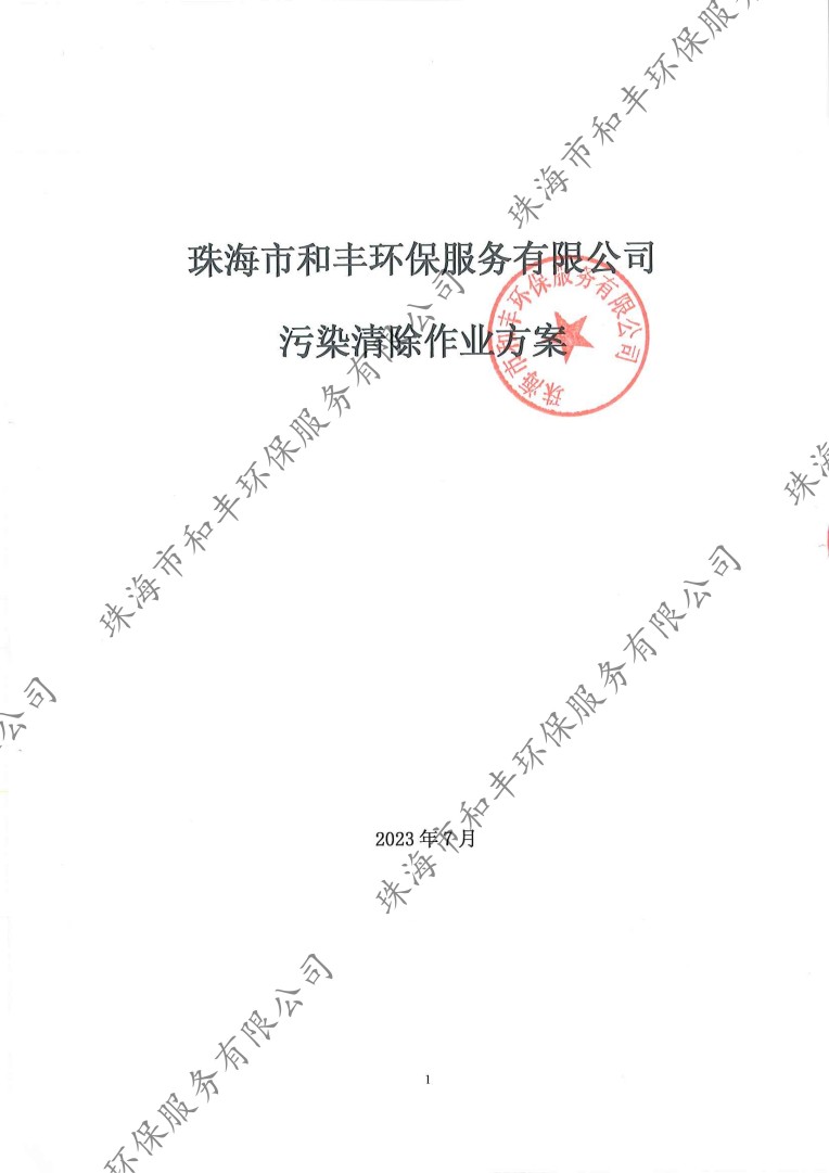 珠海市和豐環(huán)保服務(wù)有限公司污染清除作業(yè)方案