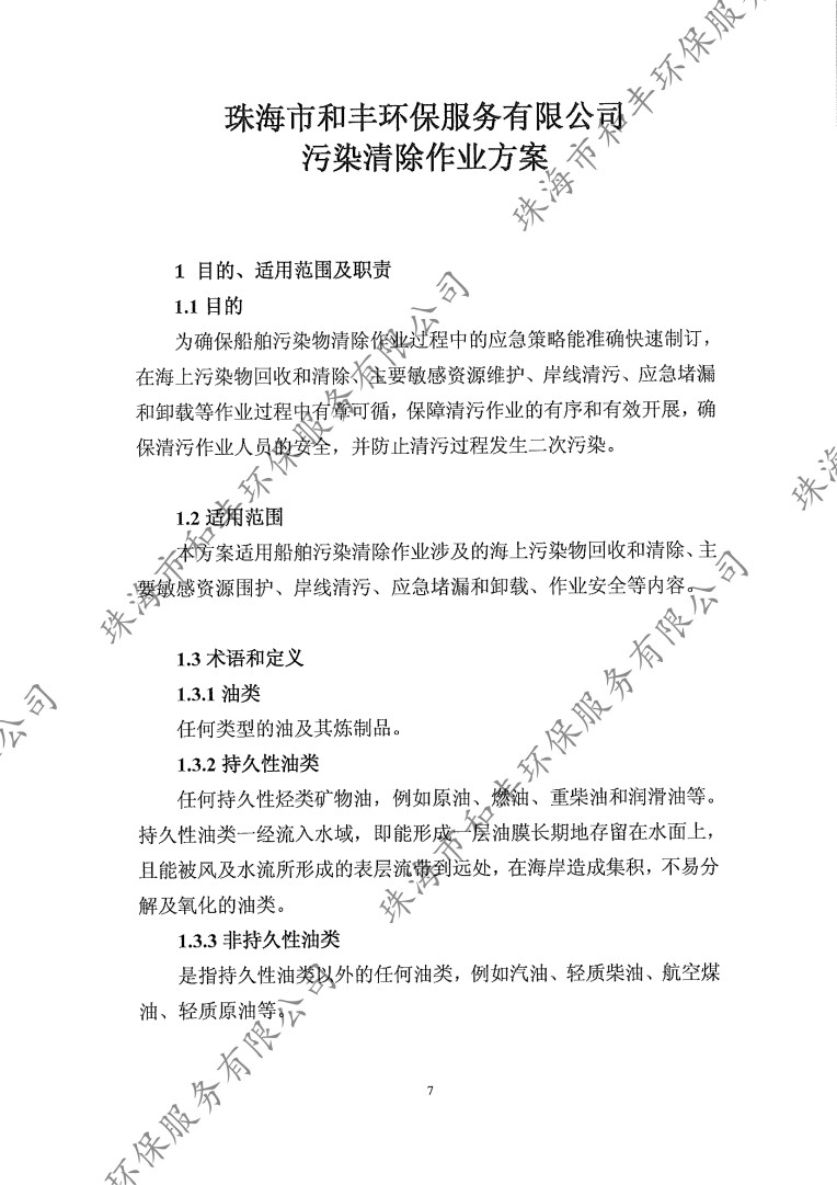 珠海市和豐環(huán)保服務(wù)有限公司船舶污染清除協(xié)議