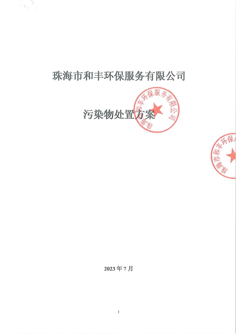 珠海市和豐環(huán)保服務(wù)有限公司污染物處置方案