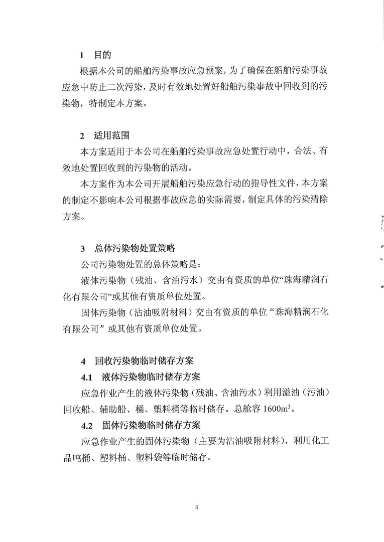 珠海市和豐公司清污協(xié)議簽訂情況和應(yīng)急處置情況