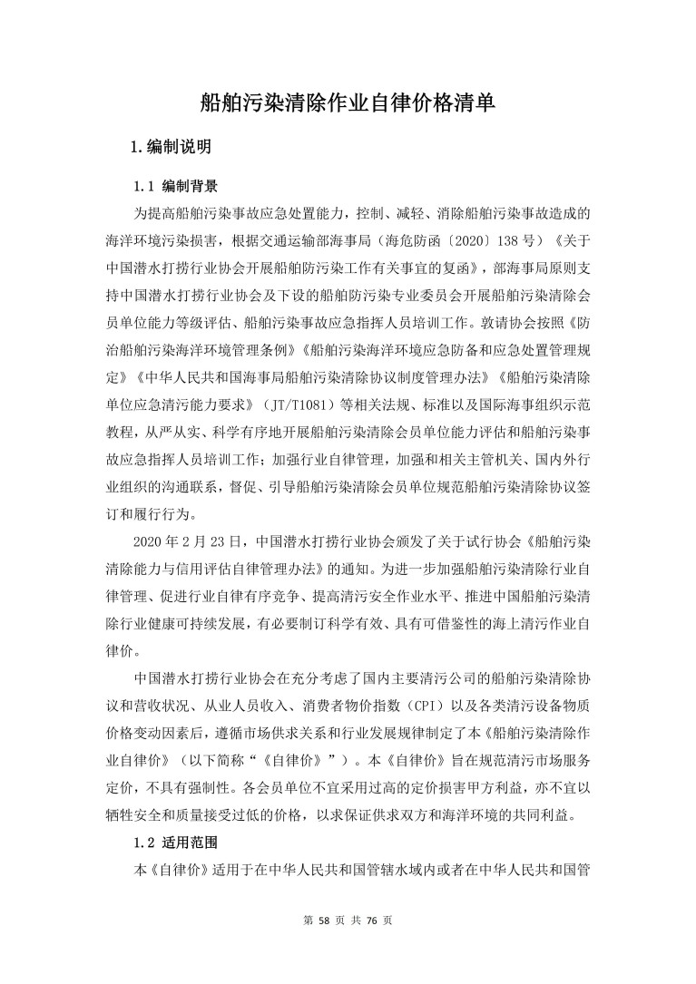 中國潛水救撈行業(yè)協(xié)會關(guān)于發(fā)布第四批次《會員自律公約》及配套文件會員單位名單的通知,船舶污染清除作業(yè)自律價格清單。