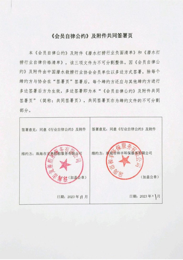 導(dǎo)語:中國潛水救撈行業(yè)協(xié)會關(guān)于發(fā)布第四批次《會員自律公約》及配套文件會員單位名單的通知,以及船舶污染清除作業(yè)自律價格清單。